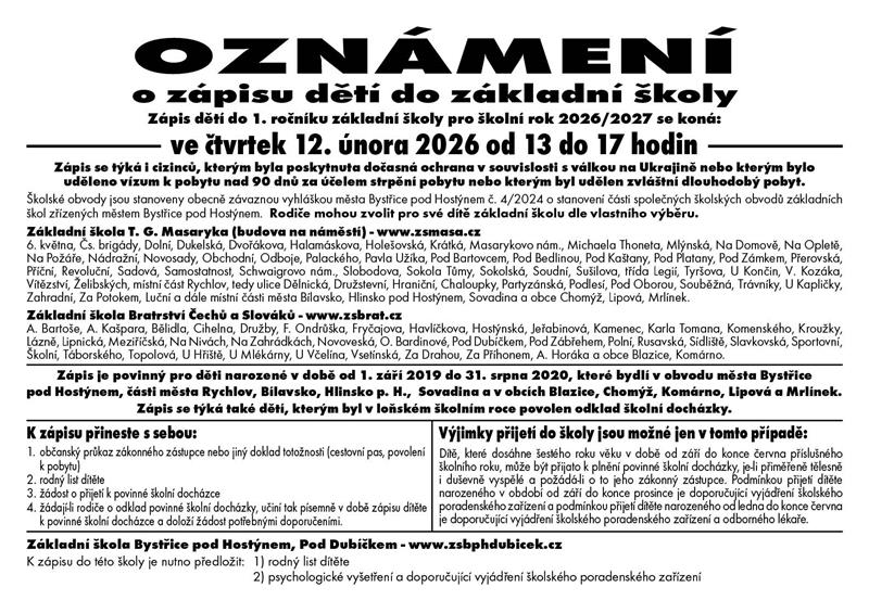 Oznámení o zápisu dětí